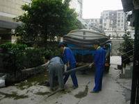 本月中询,我公司工人在成都三环外某小区进行清掏化粪池的工作情景。该小区的一座化粪池满了向四处溢出脏水…